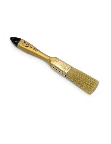Virola: Nº4 Largo de Cerda: Top Superior 100% Cerda China Uso: Profesional Premium Cabo: Madera laqueada punta dorada Packaging: Estuche de cartón y certifi cado de garantía Atributo Diferencial: Calidad Premium. Apto para todo tipo de pintura, máxima capacidad de carga. El largo y volumen de su cerda permite acabados diferenciales.